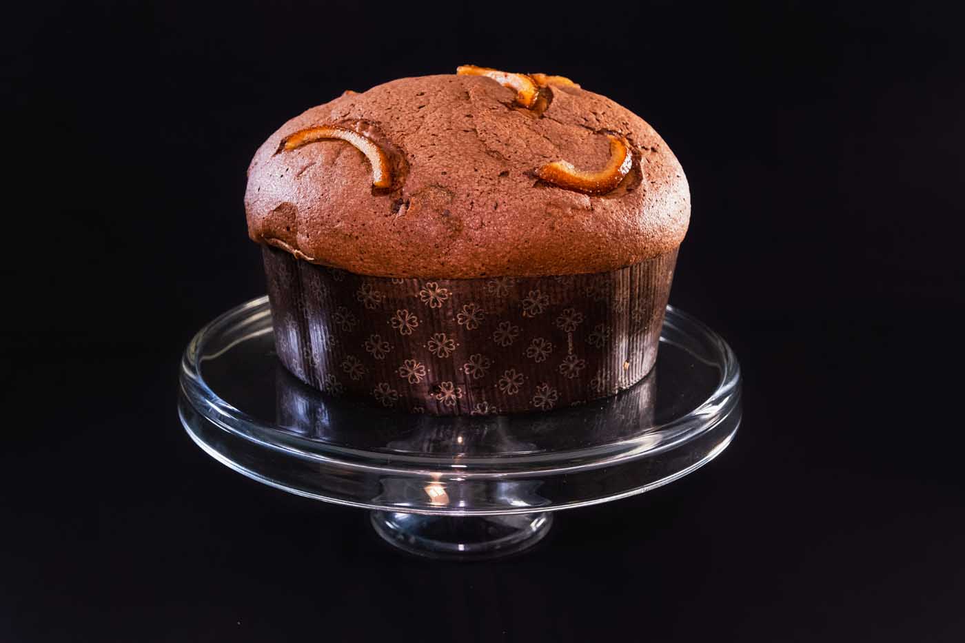 Prodotto da forno dolciario a pasta morbida con cioccolato fondente e scorza d’arancia. Ingredienti: Farina di grano tenero tipo 00, latte, uova, zucchero, miele, tuorli, burro, lievito madre (contiene glutine), cioccolato fondente extra (43 %) (pasta di cacao, zucchero, burro di cacao, emulsionante: lecitina di soia, aroma naturale: vaniglia), scorzone d’arancia (scorzone d’arancia, sciroppo di glucosio, zucchero).