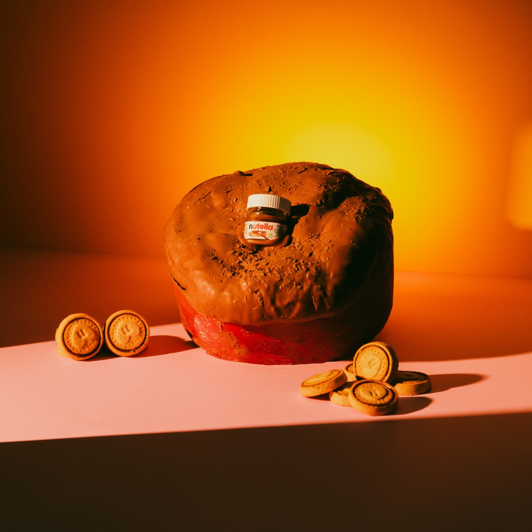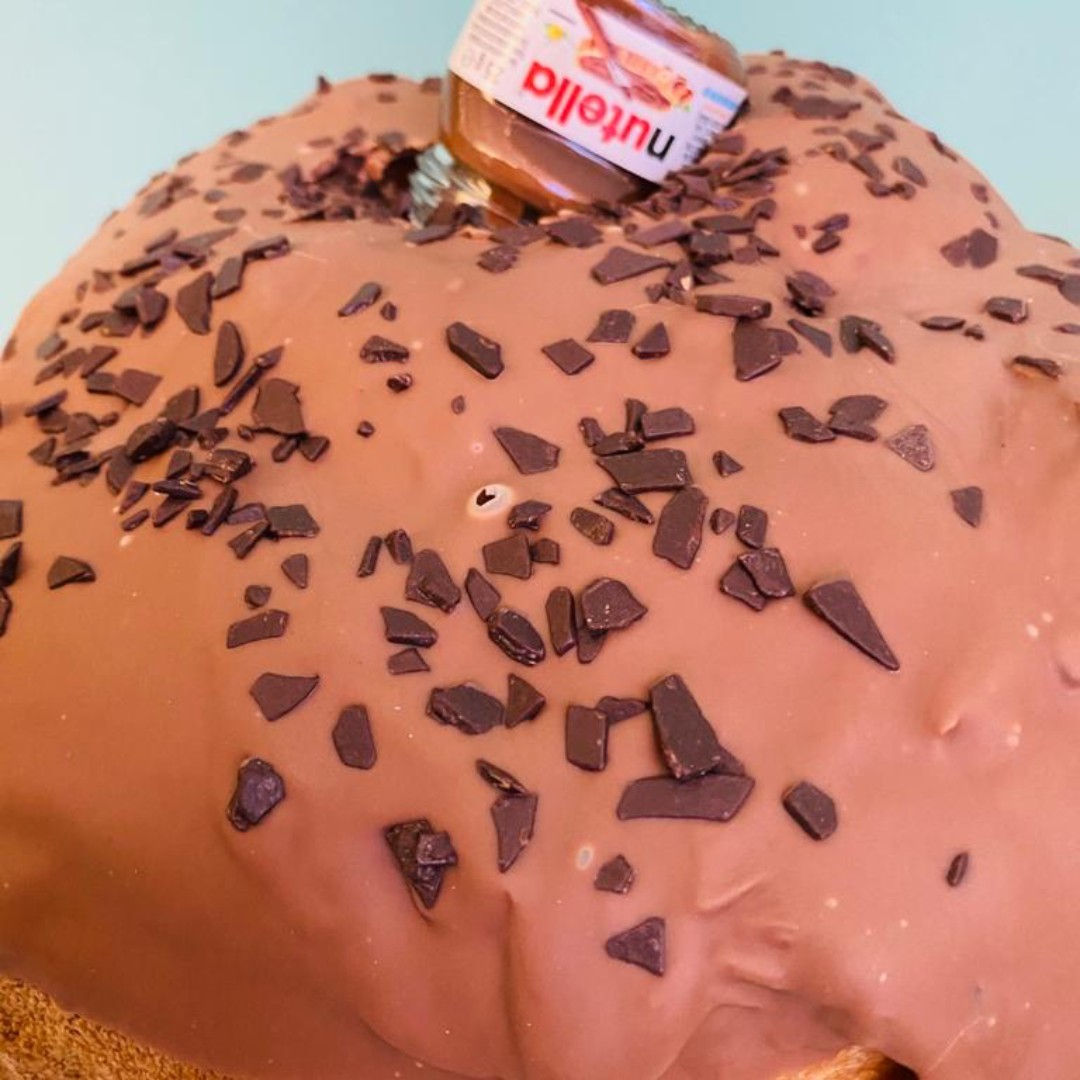 Prodotto da forno dolciario a pasta morbida con cioccolato fondente e copertura di cioccolato al latte. Ingredienti: Farina di grano tenero tipo 00, latte, uova, zucchero, miele, tuorlo d’uovo, burro, lievito madre (contiene glutine), cioccolato fondente extra (25 %) (pasta di cacao, zucchero, burro di cacao, emulsionante: lecitina di soia, aroma naturale: vaniglia), cioccolato al latte (10%) (zucchero, burro di cacao, latte in polvere, emulsionante: lecitina di soia, aroma naturale: vaniglia), nutella [zucchero, olio di palma, nocciole (13 %), latte scremato in polvere (8,7 %), cacao magro (7,4 %), emulsionante: lecitina di soia, vanillina].